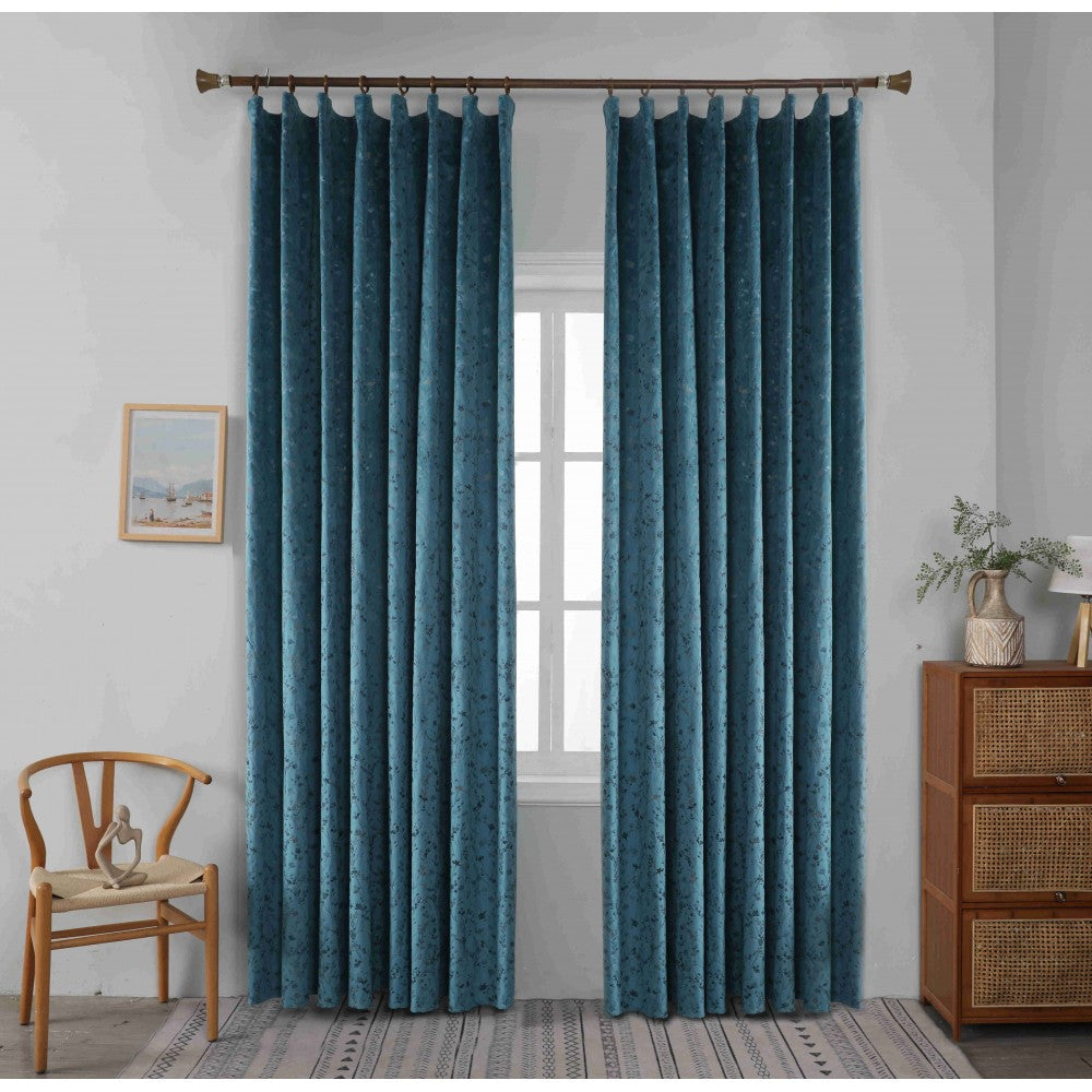 Κουρτίνα Βελούδινη Με Τρέσα (270*275) Πετρόλ -6032-5