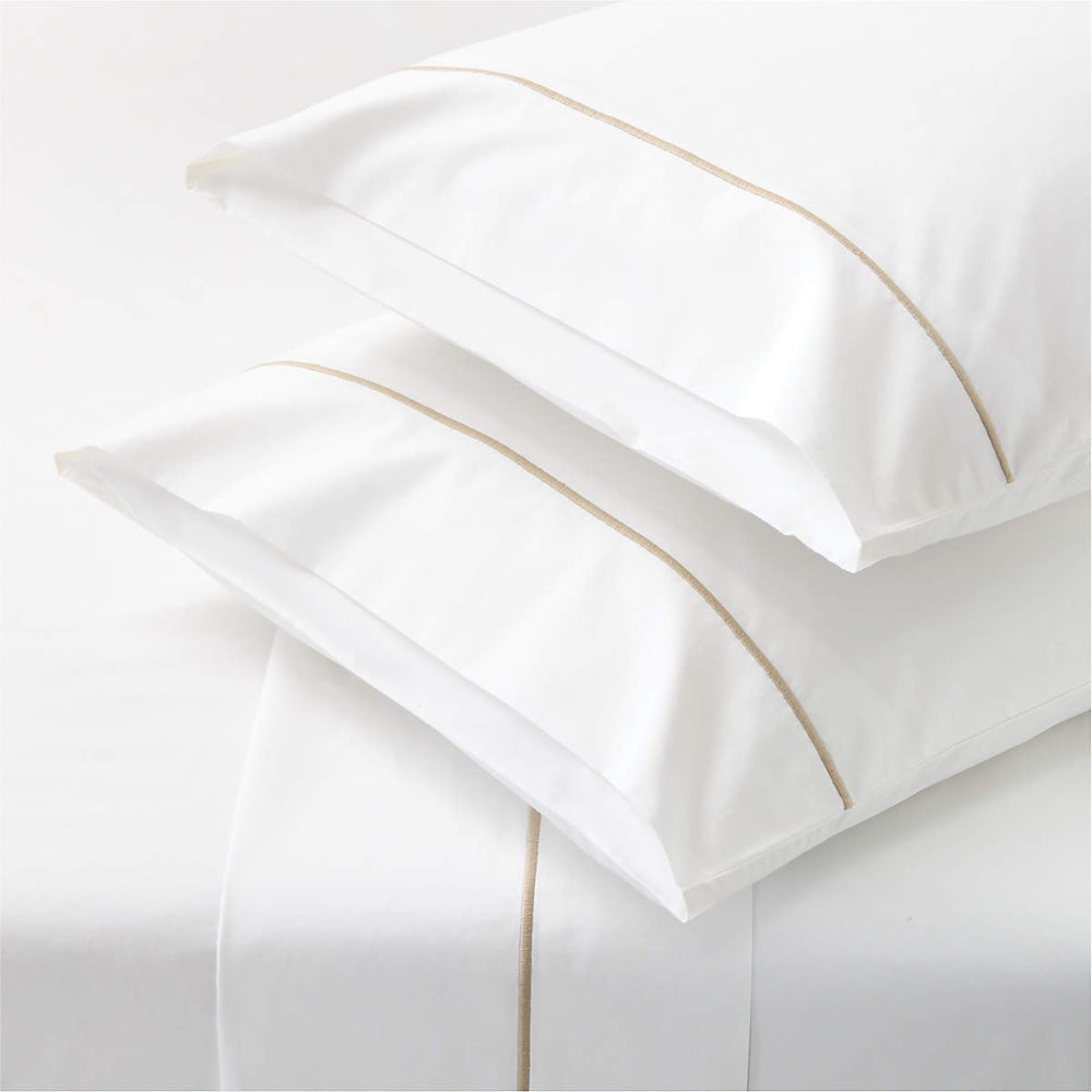 Σετ Σεντόνια Βαμβακοσατέν 300tc 240x260cm Λευκό-Χρυσό με Κέντημα 4τμχ