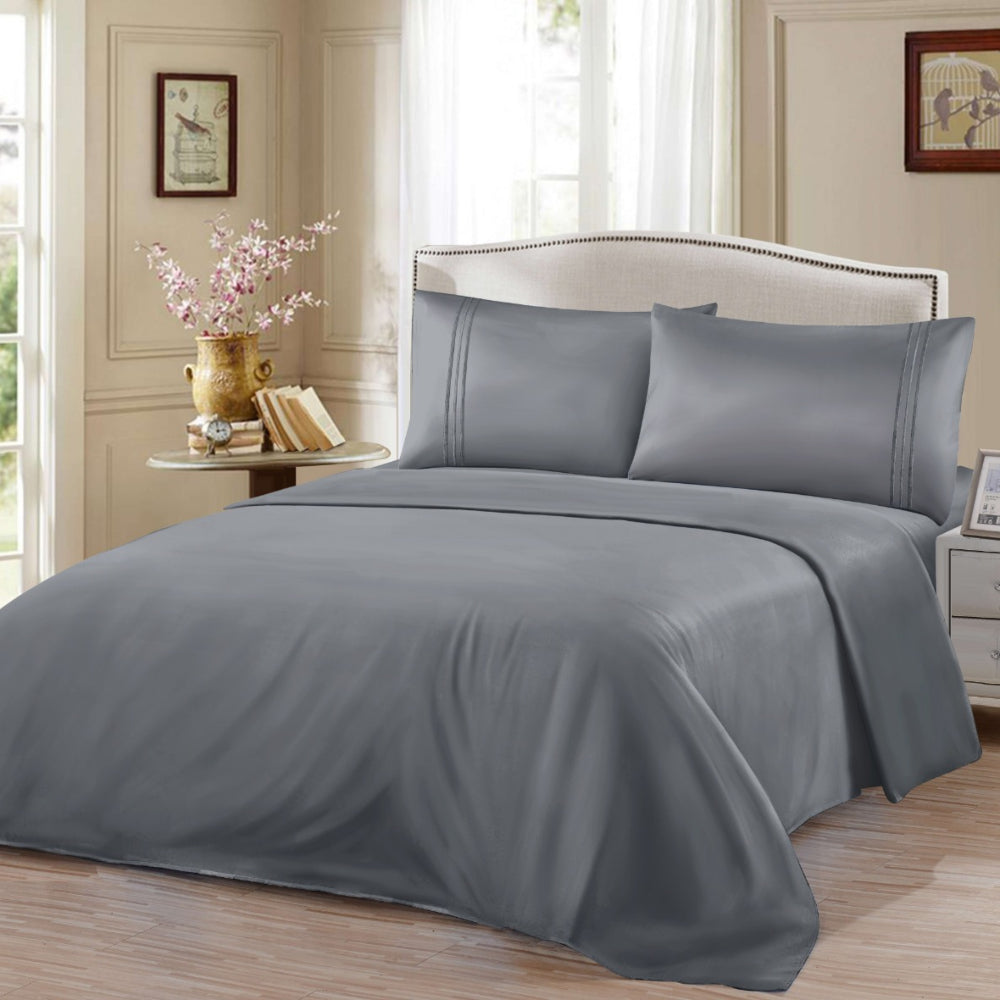 Σετ Σεντόνια Υπέρδιπλα Γκρι Σκούρο Με Λάστιχο 180×200+30cm 4τμχ Microcotton